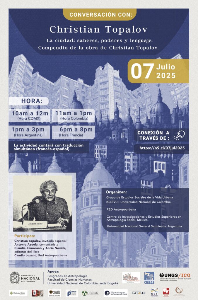 Red de investigadores en antropología urbana. Invitado especial en la Conversa Antropourbana de Julio de 2025 en la que se presentó el libro: “La ciudad: saberes, poderes y lenguaje. Compendio de la obra de Christian Topalov”, que se llevó a cabo el 7 de julio de 2025 de manera virtual.